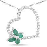 Butterfly on a Heart Necklace Genuine Gemstones 925 Sterling Silver