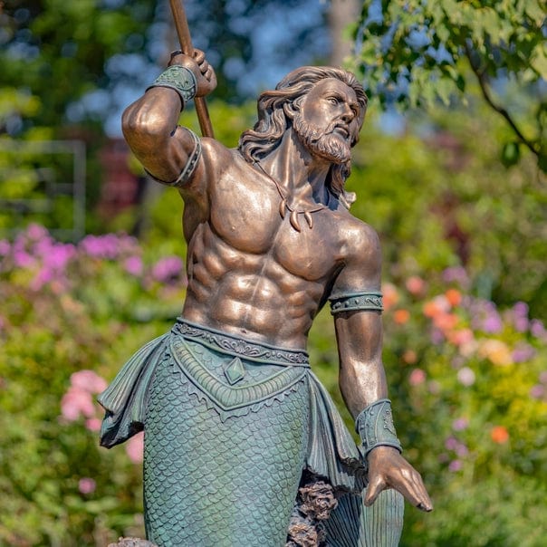 Expertly crafted at 48", this antique bronze Merman Garden Statue showcases a powerful figure throwing his trident. Made with T Mgo, this statue is durable and long-lasting, making it a perfect addition to any garden or outdoor space. Add a touch of myth and wonder with this stunning piece.
