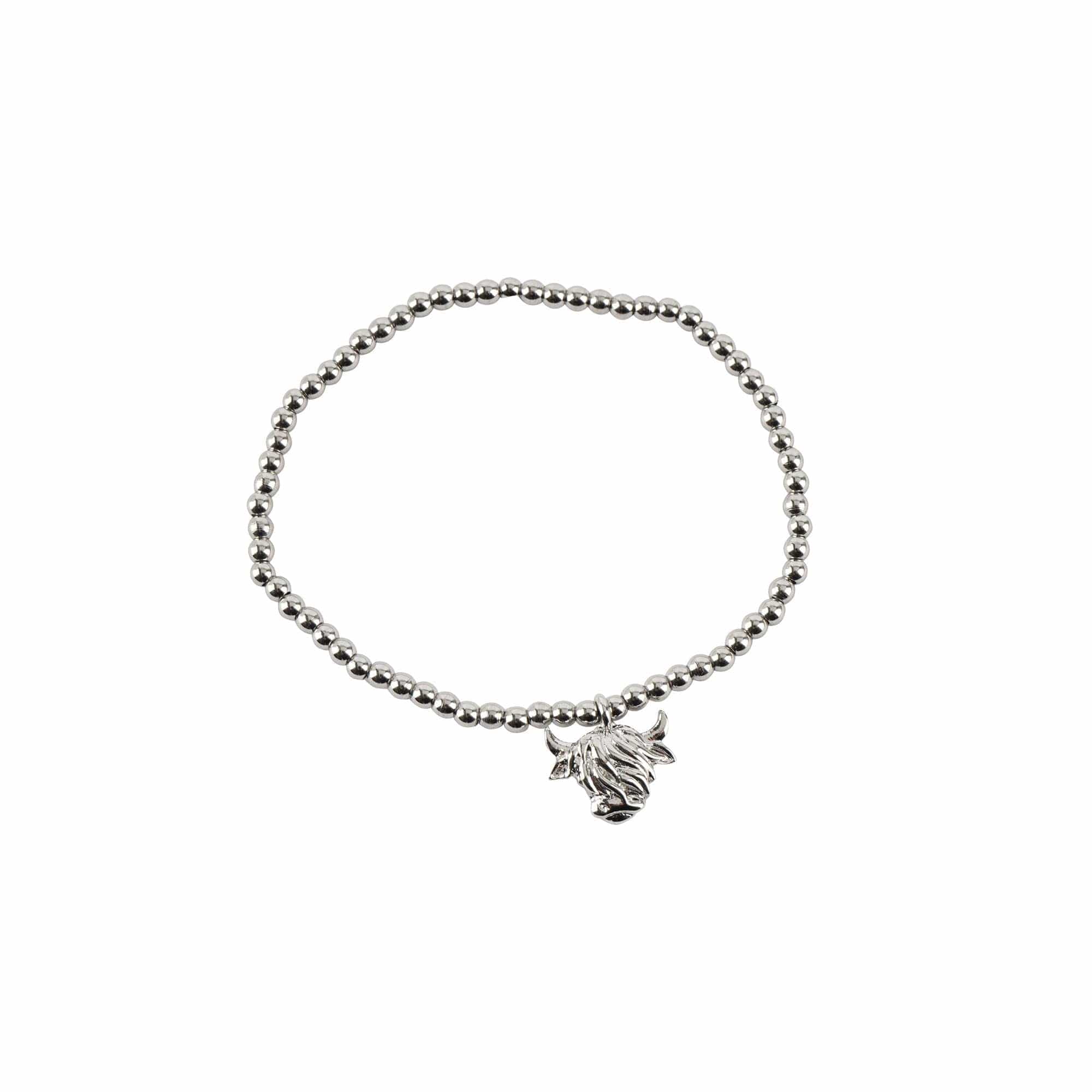 Beautiful design bracelet, elasticated silver beads and a silver Highland Cow charm. A Comfortable Fit and Practical Design | Making it great for everyday use.  Make sure to see the matching necklace.