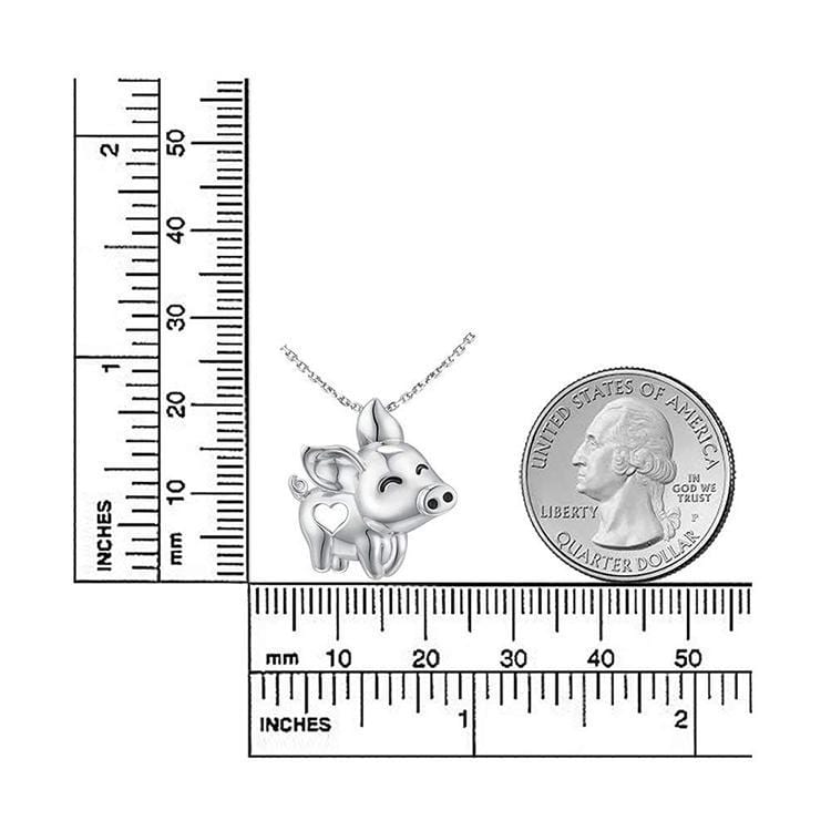 Pig Necklace with Cut Out Heart Rose, Yellow or White Gold Plated Sterling Silver