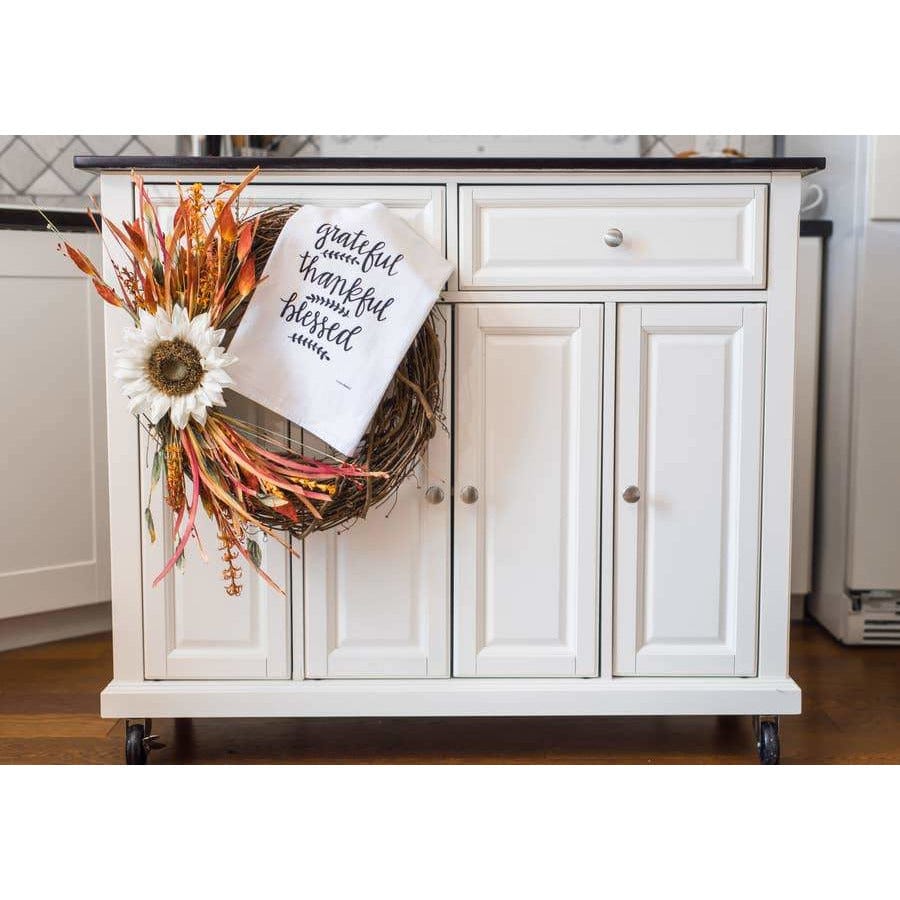 Grateful, Thankful, Blessed Handprinted White Flour Sack Tea Towel with Hanging Loop