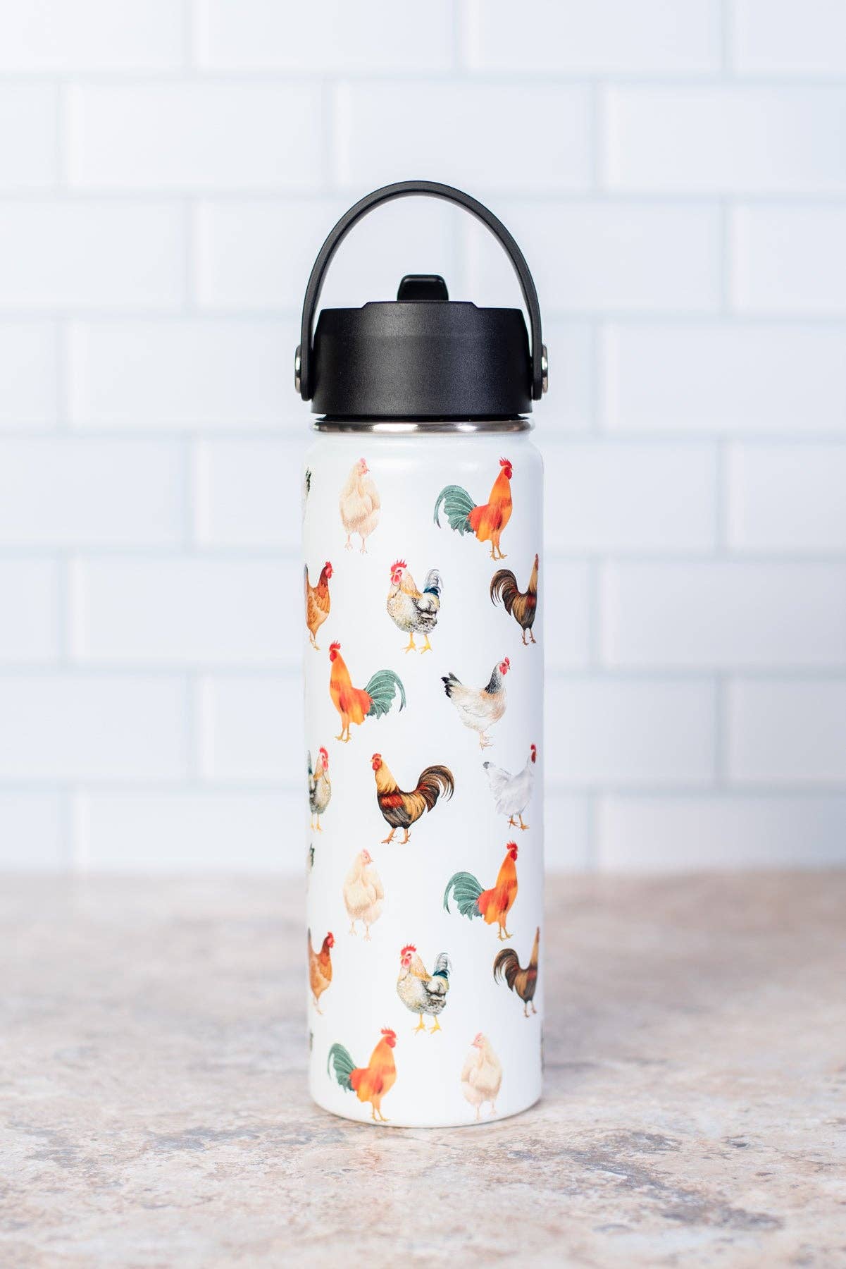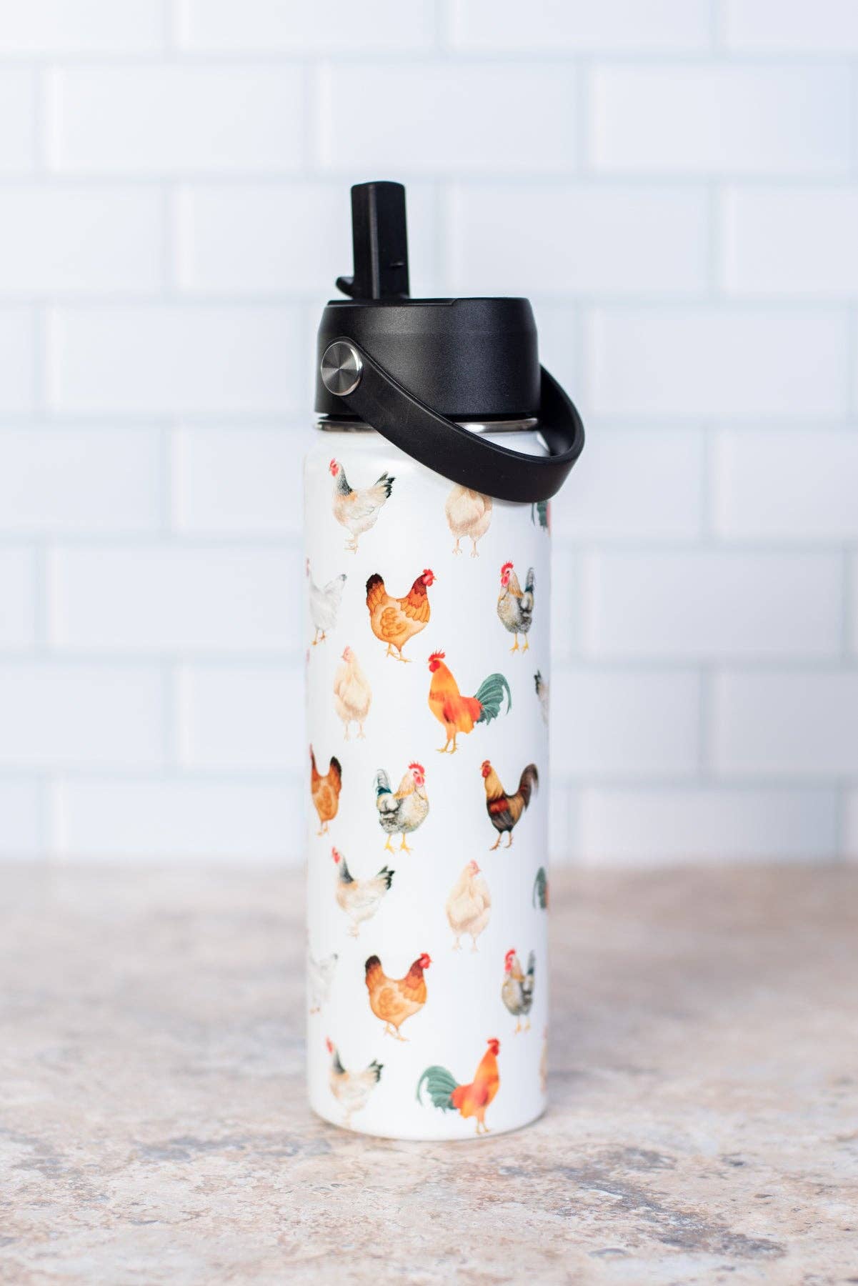 Specifications: Chicken Design 22oz Water Bottle Flip-sip lid with straw Top Handle for Easy-carry Hand wash only – not dishwasher safe FINAL SALE