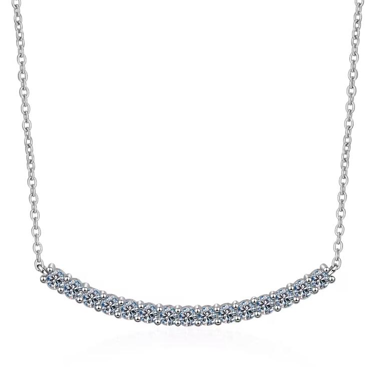 Moissanite Diamond Curved Bar Necklace .9ctw Sterling SIlver