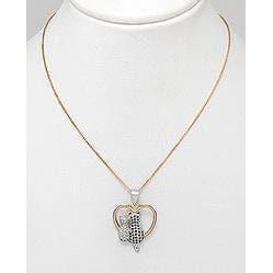 1 Micron Pink Gold, E-Coat And Rhodium Over Solid 925 Sterling Silver Cat And Heart Necklace Decorated With CZ