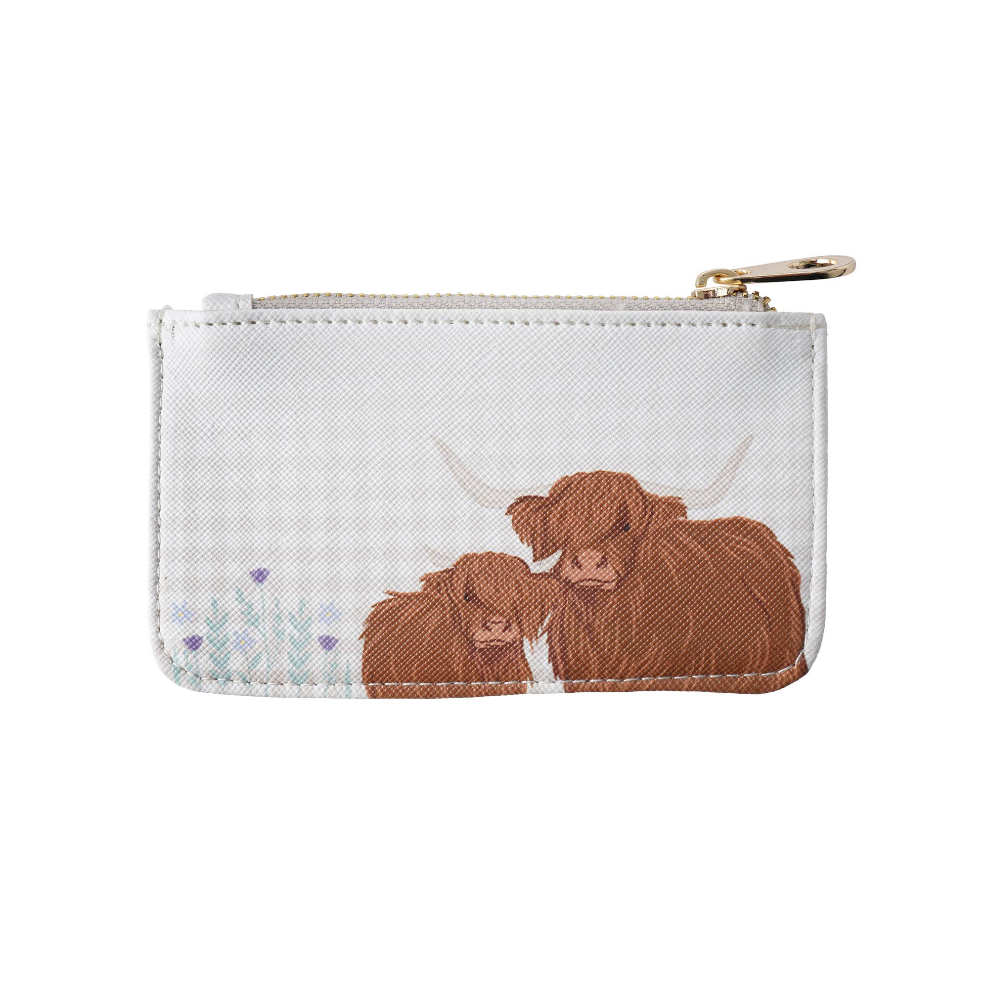 Introducing our Highland Cow Purse & Card Holder – Floral Design, vegan, with gold coloured zip pull. Add a touch of countryside charm to your everyday essentials with this beautifully designed purse and card holder, featuring a delightful Highland cow illustration surrounded by florals. Made for convenience and style, it includes space for cards, coins, and notes, and is finished with a gold coloured metal zip pull for an elegant finishing touch. A fun and functional accessory that blends rustic style with everyday usefulness. Makes a great gift for those that love the gorgeous highland cow, there is a beauty bag in this design also available. Makes a great gift duo.