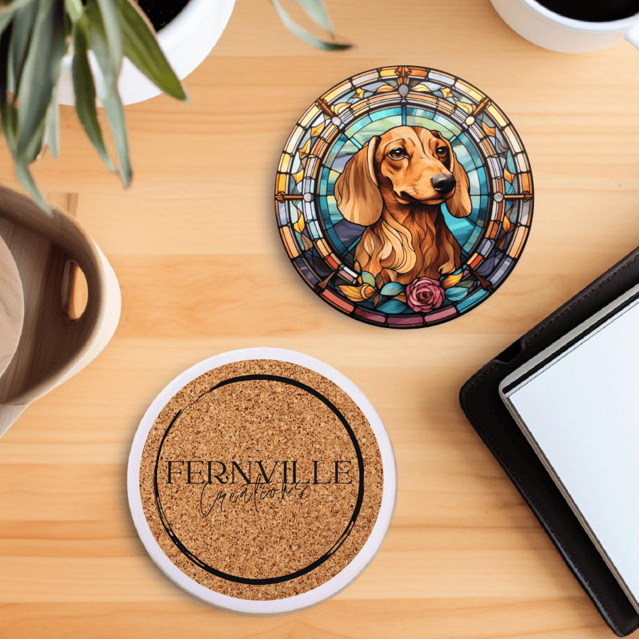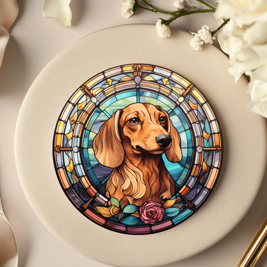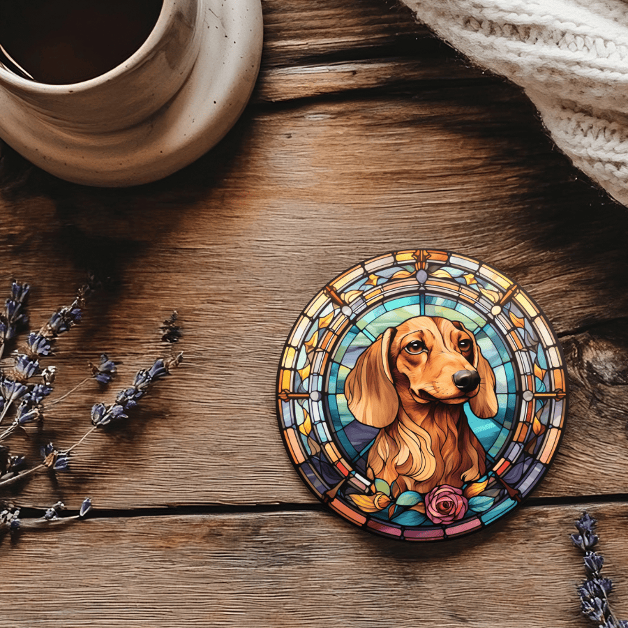 Dachshund Coaster – Printed Stained Glass Style by Fernville Creations