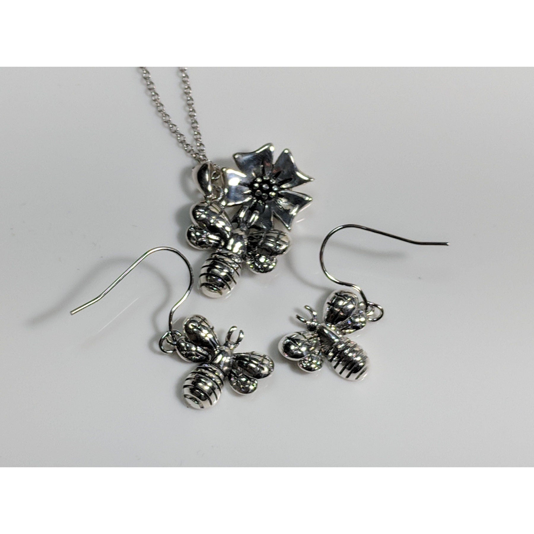Honey Bee Necklace and Earrings SET-Cutest Little Bees! Sterling Silver