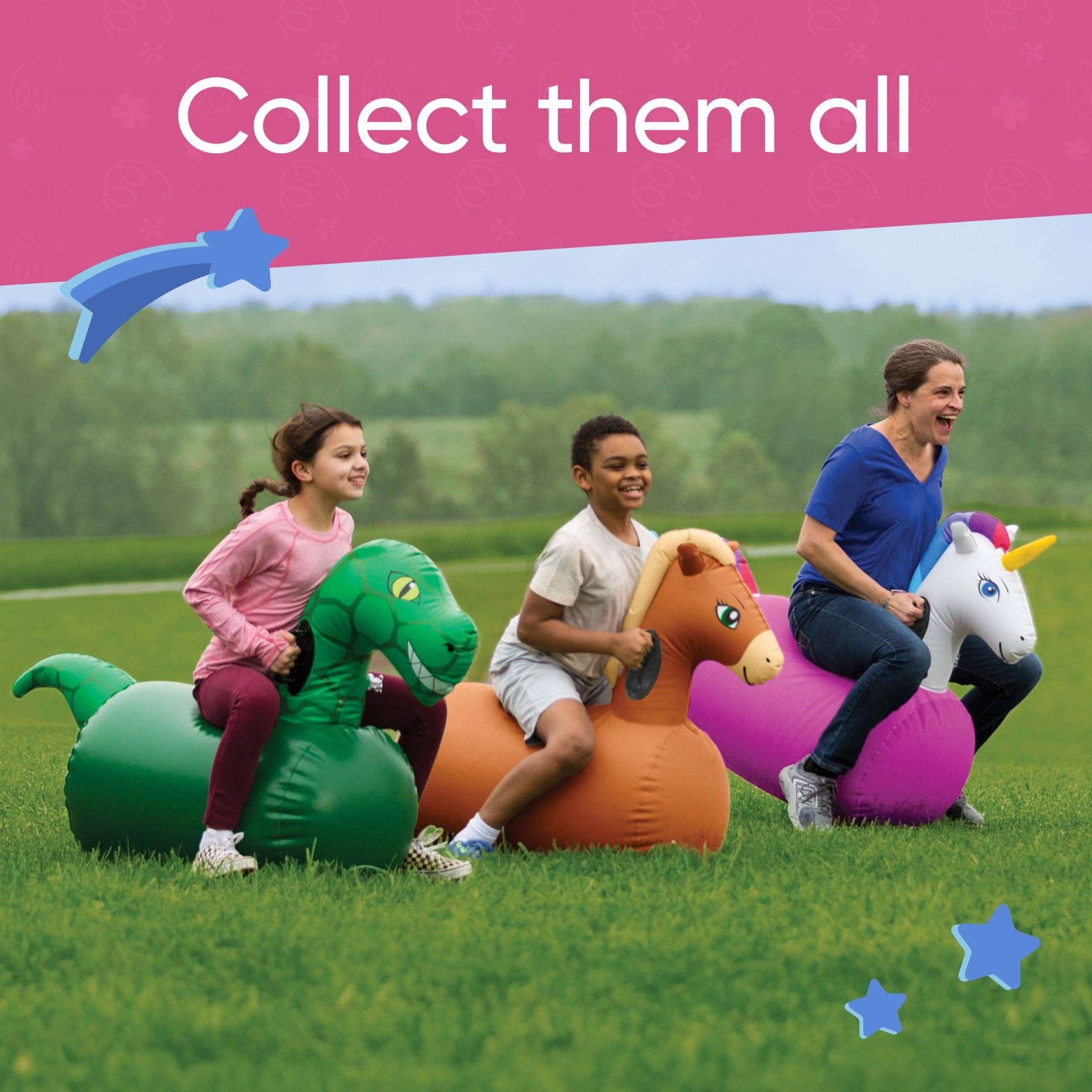 Inflatable Ride-On Hop 'n Go Cow, Dinosaur or Unicorn