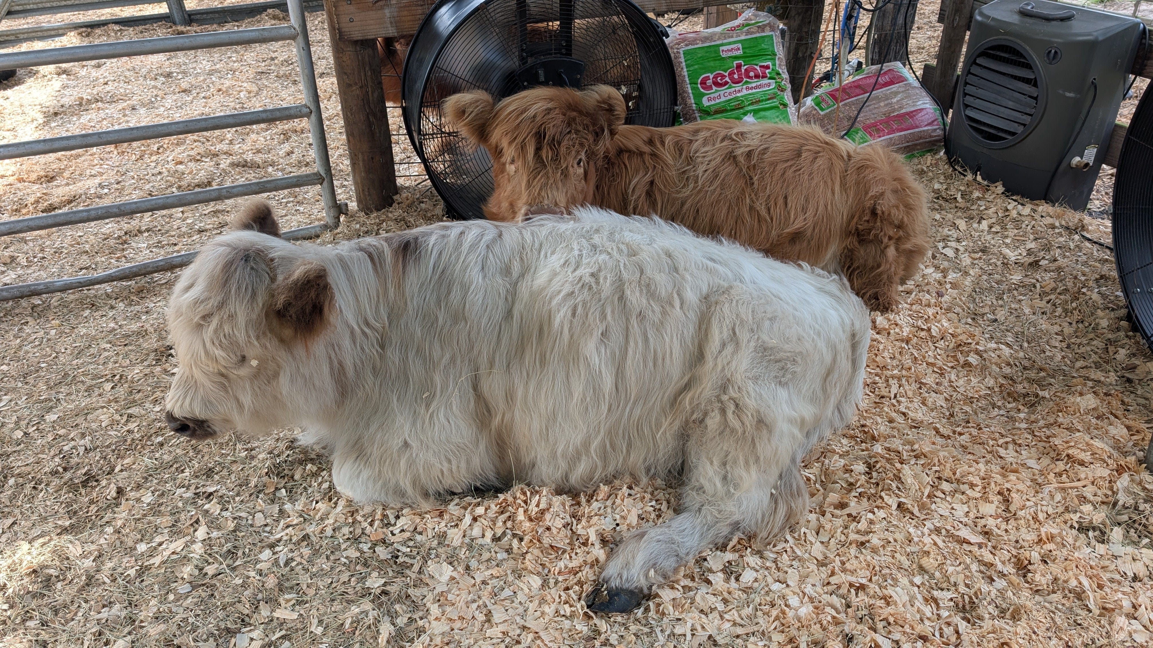 HIGHLAND CUDDLE: $129.95 lets two people spend at least 30 minutes with our mini-moo Jett the fluffy Highland cow. You will enjoy his peaceful presence which will help relieve your stress. Highland Cow lovers will be over the moon with this experience! Guests won't be rushed if there are no appointments directly following theirs.