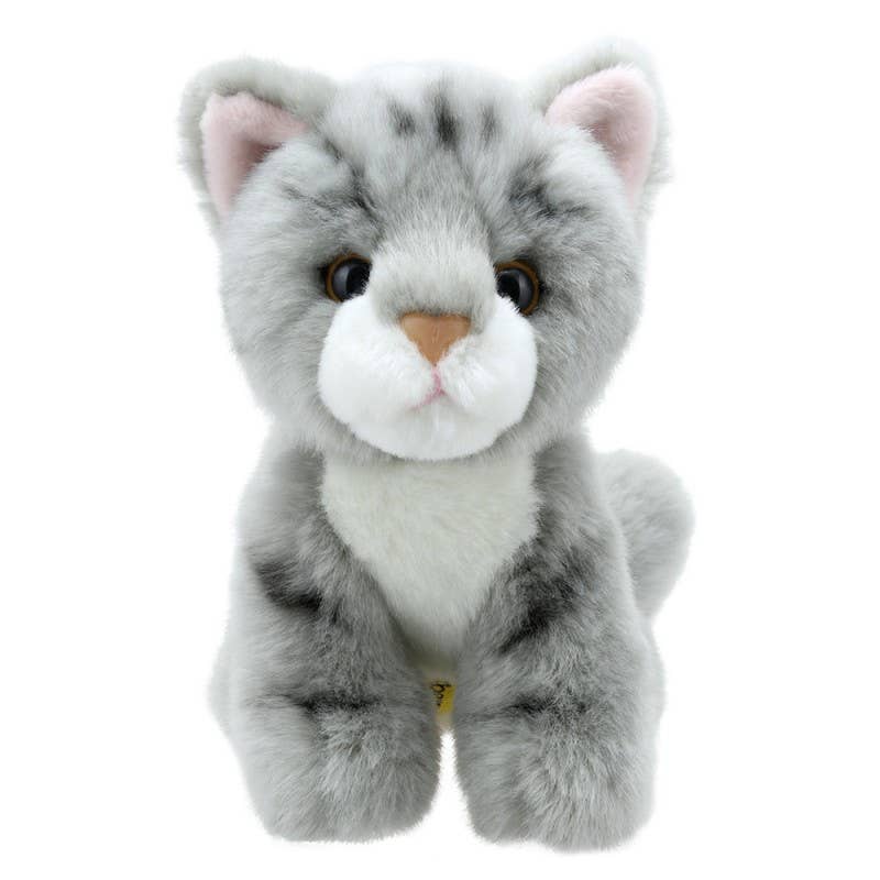 Step into a tiny wonderland with Wilberry Minis! These pocket-sized companions are big on charm and adventure. From adorable forest creatures to mystical unicorns, these mini soft toys are perfect for on-the-go storytelling and spontaneous play. With over 40 animals to choose from (and more on the way!) there really is a Wilberry Mini for everyone! Our Grey Cat Wilberry Mini captures the enchanting spirit of cats with its lifelike depiction. Expressive and intricate, it's a must-have for cat enthusiasts. This adorable lifelike animal by Wilberry is finished to a very high standard and has superb attention to detail. At less than 15cm, they’re small enough for toddlers to carry about, making them the perfect companion for all of life’s little adventures!